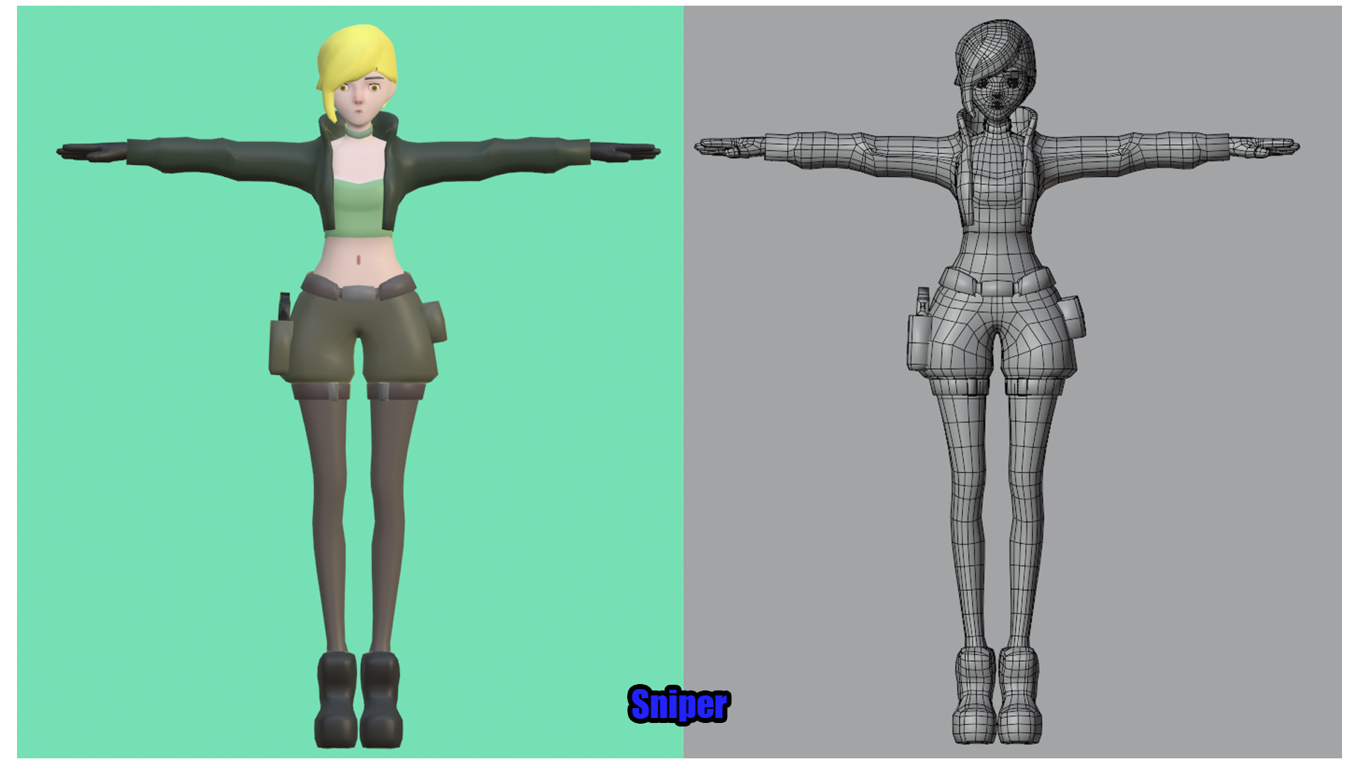 Female: Mage (spellcaster), Healer (support), Sniper (ranged shooter), Ranger (agile scout)