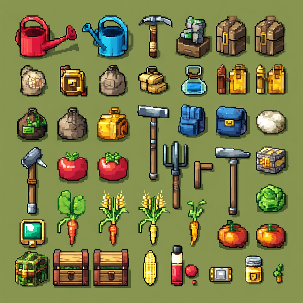 ๐ Tools & Items โ Watering cans, fishing rods, axes, seeds, bags