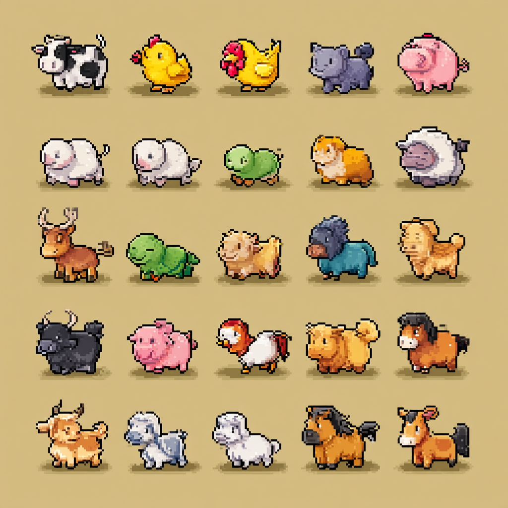 ๐ Farm Animals โ Idle sprites of animals like cows, chickens, pigs, and more