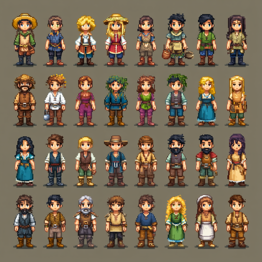 ๐งโ๐พ Human Characters โ Idle sprite sheets of villagers, merchants, farmers, and travelers (non-chibi)